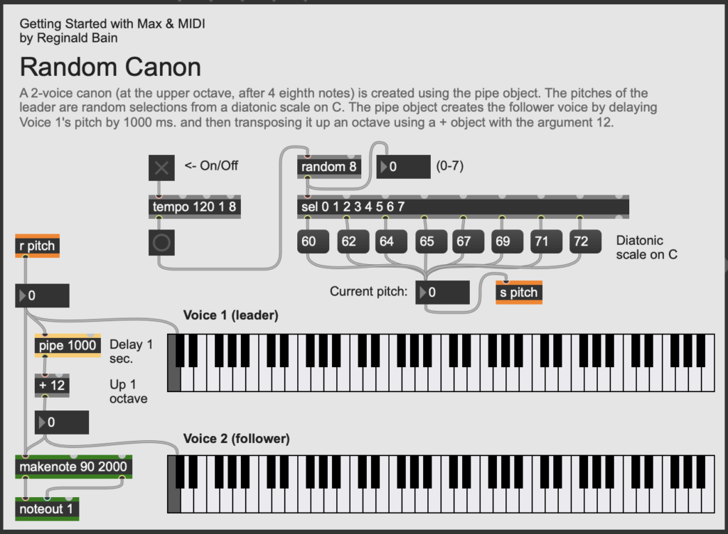 - The pitches form a diatonic scale on C4: 60, 62, 64, 65, 67, 69, 71, 72.